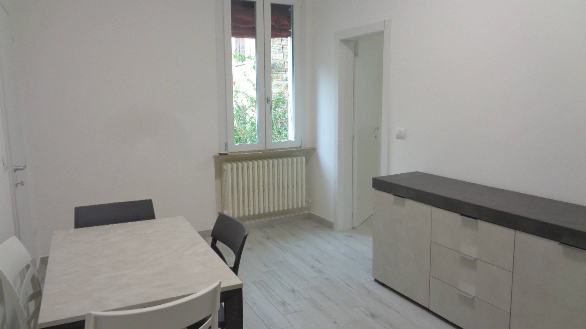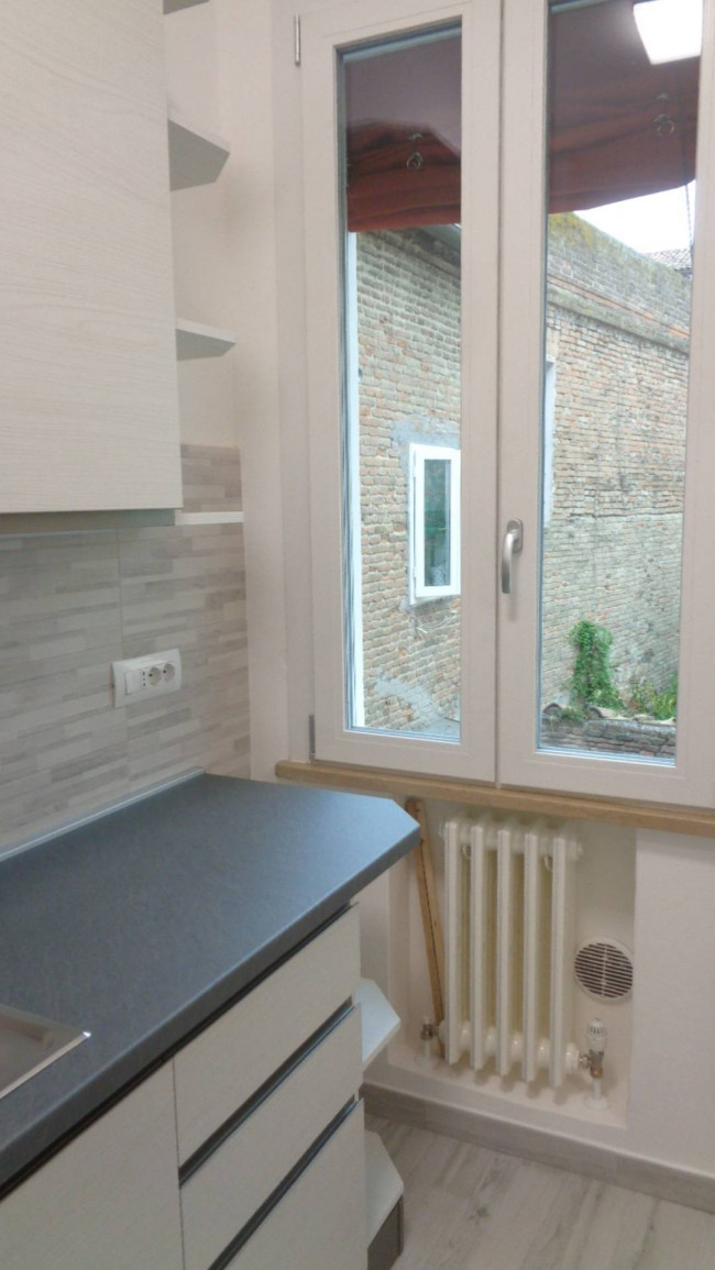 appartamento in Affitto a Ferrara, in centro storico adiacente a via delle Scienze, posto al primo piano in palazzina di sole quattro unità. L'appartamento, luminosissimo ed estremamente silenzioso grazie all'affaccio interno, è stato recentemente ristrutturato completamente e arredato a nuovo, si compone di ingresso, soggiorno, cucina, camera matrimoniale, bagno. Corte interna comune e deposito cicli nel vano scale.