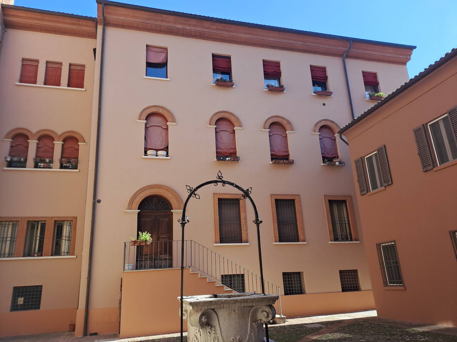 appartamento in Vendita a Ferrara, in posizione centralissima adiacente via De Romei, libero a rogito, inserito in piccola palazzina di sole quattro unità all'interno di un importante immobile di interesse storico risalente al 1500. L'appartamento è posto al primo piano ed è composto da un ingresso,la sala-soggiorno, una cucina abitabile, nella zona notte due camere da letto, un disimpegno con armadio, due bagni. Al piano seminterrato completa la proprietà una ampia cantina.